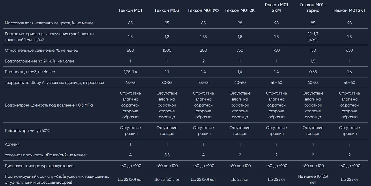 Устойчивость к перепадам температур. Мастика сохраняет свои свойства при температуре от -50°C до +100°C, что делает ее пригодной для использования в любых климатических условиях.
